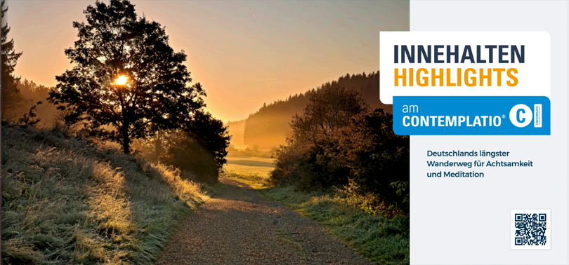 CONTEMPLATIO, das ist Deutschlands längster Wanderweg für Achtsamkeit und Meditation. Sie wandern in wunderbarer Natur entlang spiritueller Orte, um bei sich selbst anzukommen. Erforschen Sie beim Wandern Ihre Offenheit für die Wahrnehmung der Natur und die Besinnung auf das Wesentliche im Leben. Vertrauen Sie auf das, was Sie selbst spüren, wenn Sie der Stille begegnen.